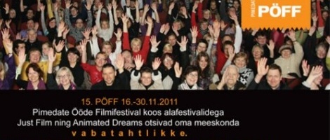 15. Pimedate Ööde Filmifestival (16.-30.11.2011) koos alafestivalidega Just Film ning Animated Dreams otsivad oma meeskonda vabatahtlikke.